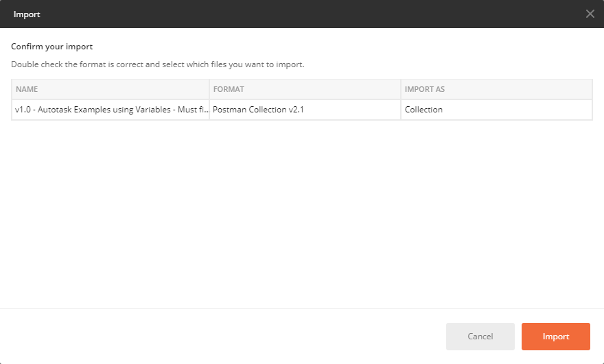 To help you learn how to construct requests to the Autotask REST API, Datto provides a customizable REST API request collection for use with Postman. The examples it contains are for educational purposes only. Datto does not guarantee or warranty their functionality.
