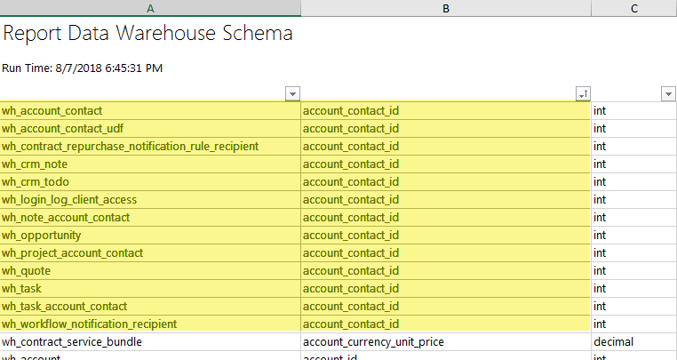 - Download the Report Data Warehouse Schema spreadsheet to find which columns each view contains.